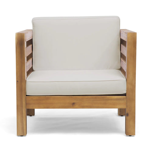 Modern Patio Lounge Chair Outdoor Club Chair with Beige Cushion and Teak Acacia Wood Frame for Courtyard and Beach Use